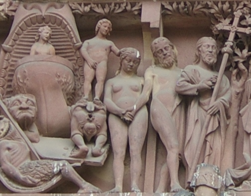 Strasbourg Cathedral: the risen Christ brings Adam and Eve out of Hell to Paradise. ? Is all human suffering the same suffering – the suffering of…
